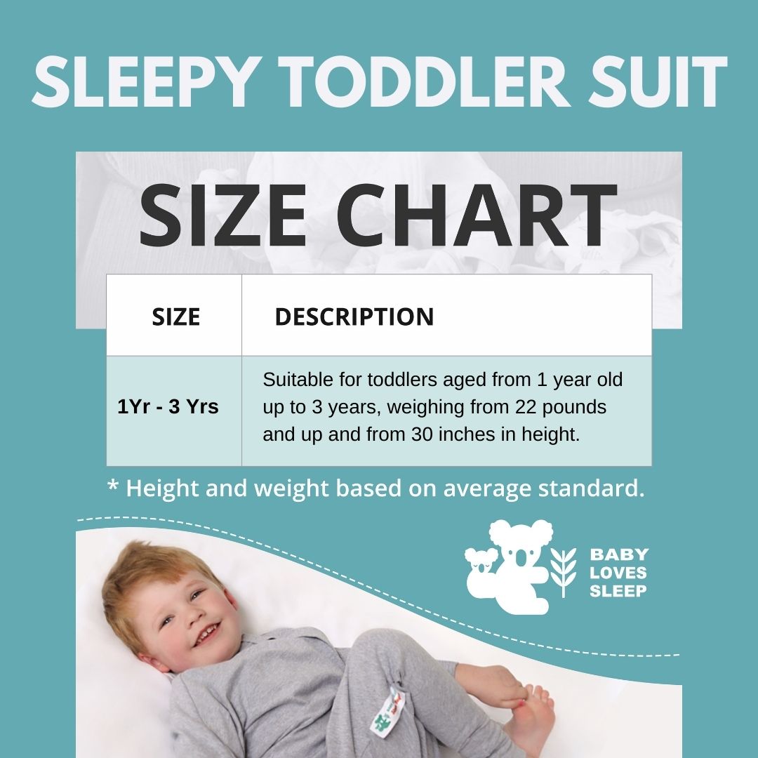 Our Sleepy Toddler onesie sleepsuits are designed for toddlers aged from 1 year up to 3 years.